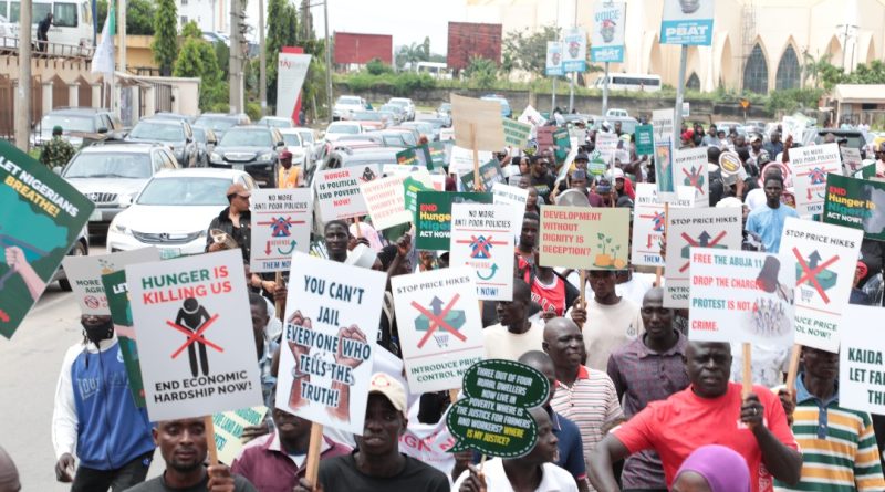 Thousands of Nigerians took to the streets of Abuja, the country’s capital on Friday protesting high cost of living in the country, demanding an end to social and institutional poverty.